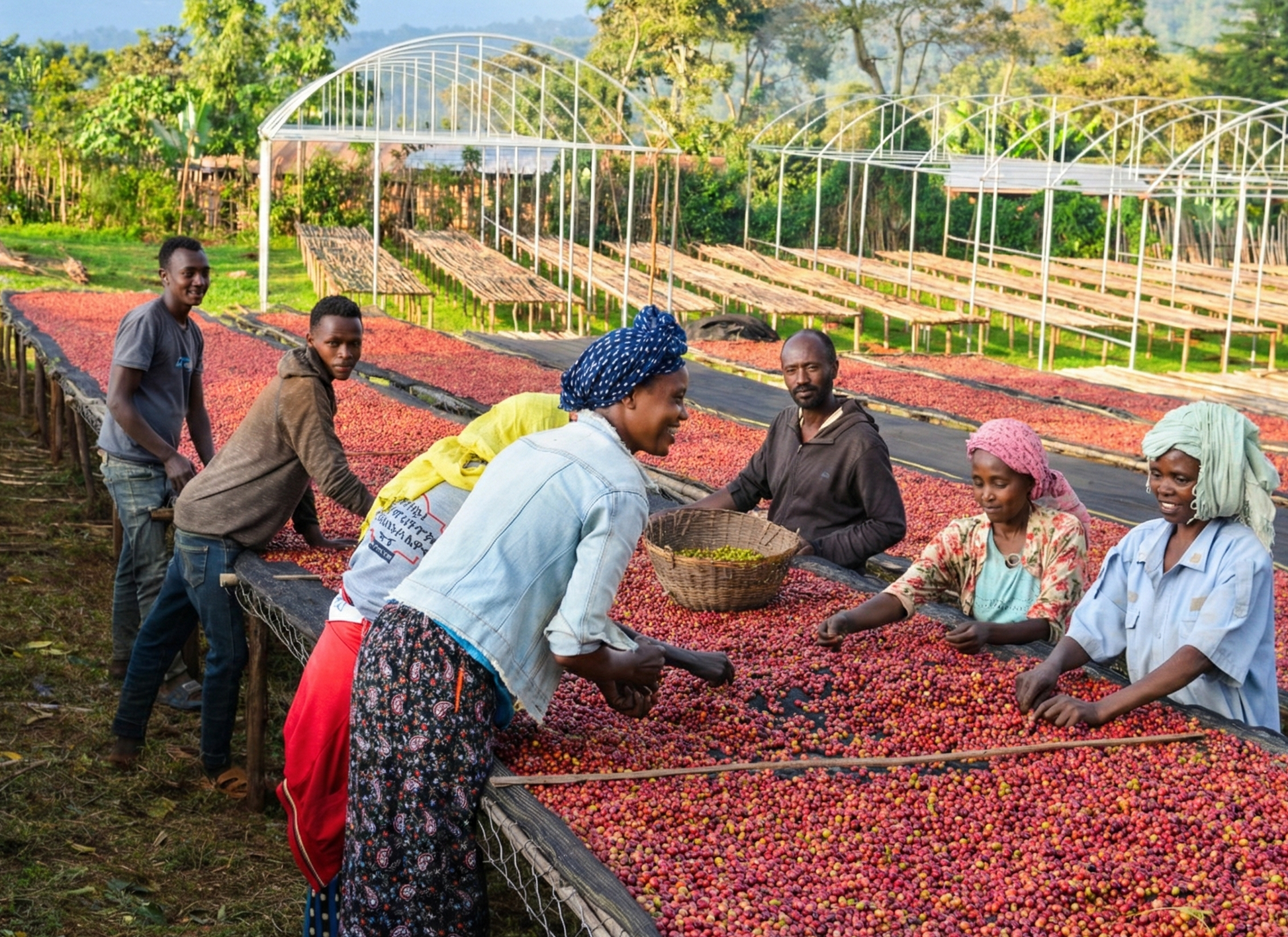 Actualmente, operan su propia estación de lavado y secado en Guji, llamada Lensa Gari, trabajando con aproximadamente 200 pequeños agricultores. También tienen una estación de secado alquilada en Yirgacheffe, donde colaboran con 30 agricultores locales para producir y exportar cafés excepcionales a nivel internacional, no sólo en términos de calidad, sino también en transparencia y apoyo al bienestar de la zona.